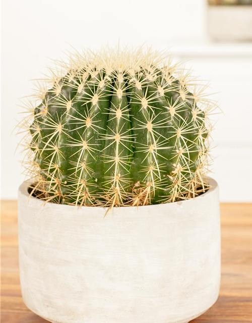 Die Triebe von Echinocactus grusonii sind bedornt.