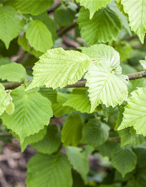 Die sommergrünen Blätter der Waldhasel sind mittelgrün, rundlich, wechselständig, gesägt. Diese sind etwa 6 - 10 cm groß. Waldhasel zeigt sich leuchtend orangegelb im Herbst.