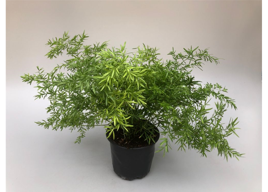 Hoher Blattschmuckwert. Die sommergrünen Blätter des Zierspargels sind mittelgrün, nadelförmig.