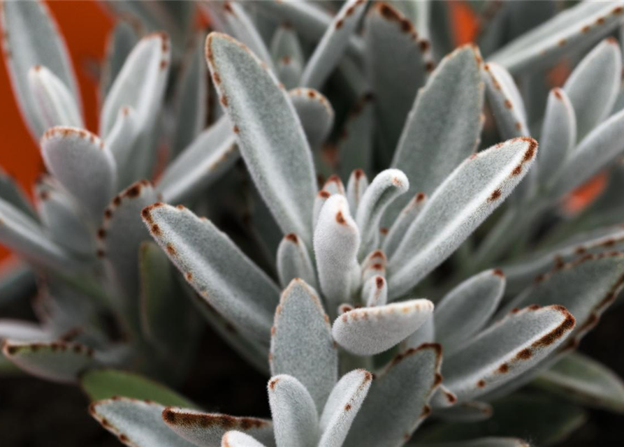 Die Pandapflanze (Kalanchoe tomentosa) ist eine orangegelb blühende Pflanze, die eiförmige, dickfleischige, blau-graue, gesägte Blätter trägt. Ihre becherförmigen Blüten erscheinen von Dezember bis April. Diese rosettenartige und sukkulente Pflanze gedeiht am besten an einem sonnigen bis halbschattigen Standort.