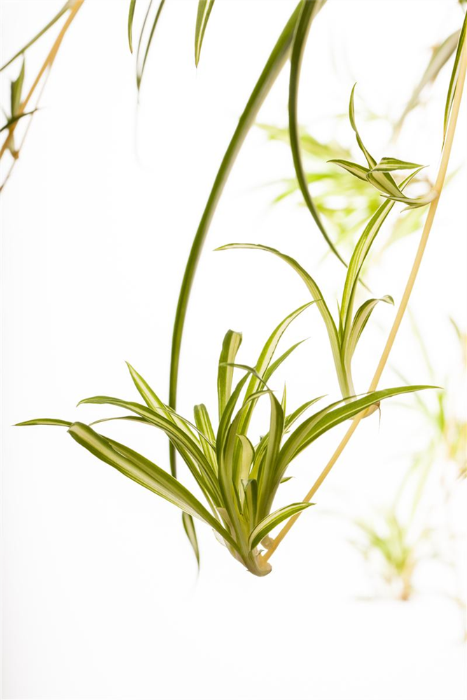 Die Grünlilie (Chlorophytum comosum) ist eine Pflanze mit dekorativen, grün-weißen Blättern. Sie sind lineal und ganzrandig. Sie bringt von Januar bis Dezember weiße, sternförmige Blüten hervor. Bevorzugt wird ein heller Standort.