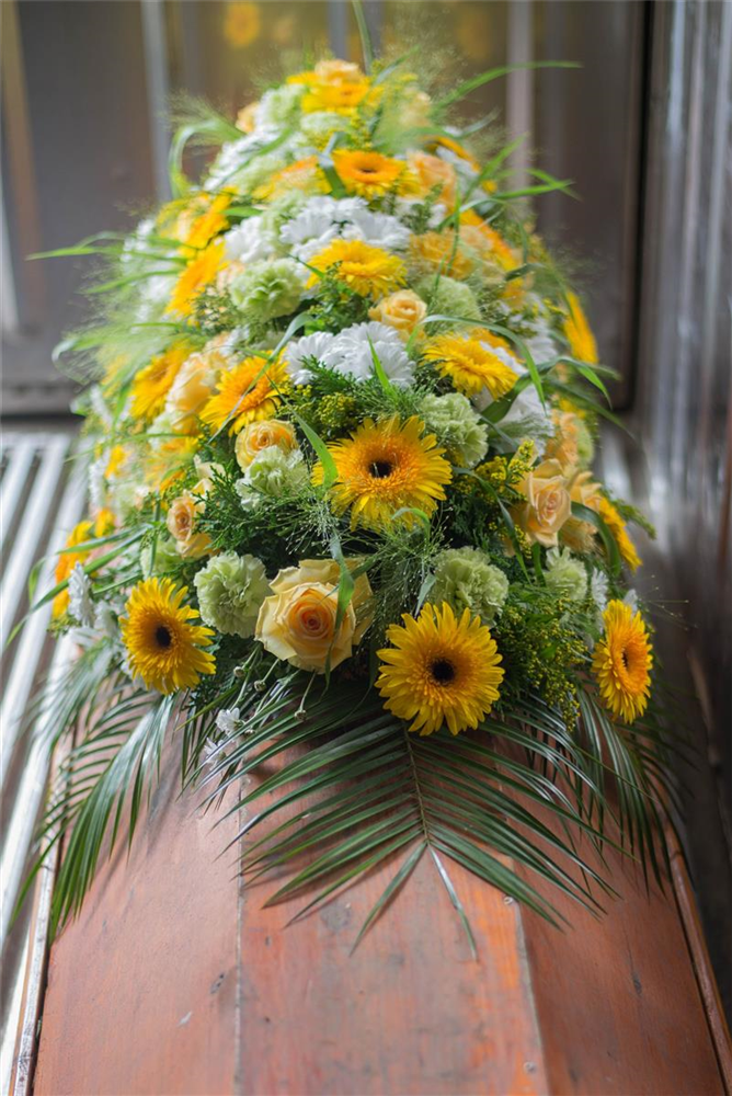 Das Sarggelege wird mit viel Liebe und großer Sorgfalt frisch gefertigt. Bitte beachte, dass der gelieferte Sargschmuck, je nach Saison und Verfügbarkeit der einzelnen Blumen, von den Bildern abweichen kann. Hinzu kommt, dass es sich hierbei nur um das reine Sarggesteck handelt. Auf Wunsch kann die entsprechende Schleife dazu bestellt werden (siehe Trauerschleife).