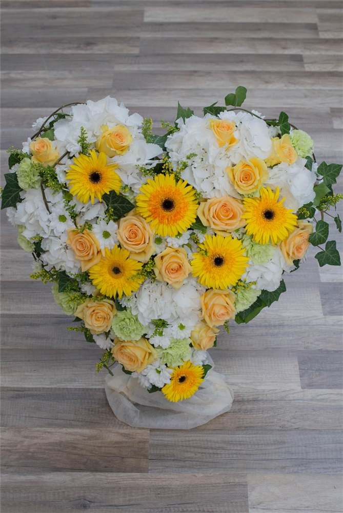 Das Trauerherz wird mit viel Liebe und großer Sorgfalt frisch gefertigt. Bitte beachte, dass das gelieferte Trauerherz, je nach Saison und Verfügbarkeit der einzelnen Blumen, von den Bildern abweichen kann. Hinzu kommt, dass es sich hierbei nur um das reine Herz handelt. Auf Wunsch kann die entsprechende Schleife dazu bestellt werden (siehe Trauerschleife).