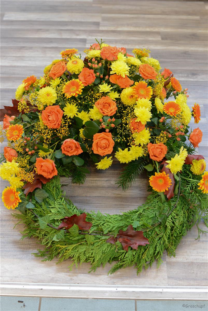 Der Trauerkranz wird mit viel Liebe und großer Sorgfalt frisch gefertigt. Bitte beachte, dass der gelieferte Trauerkranz, je nach Saison und Verfügbarkeit der einzelnen Blumen, von den Bildern abweichen kann. Hinzu kommt, dass es sich hierbei nur um den Kranz handelt. Auf Wunsch kann die entsprechende Schleife dazu bestellt werden (siehe Trauerschleife).