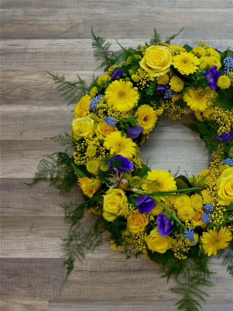 Der Trauerkranz wird mit viel Liebe und großer Sorgfalt frisch gefertigt. Bitte beachte, dass der gelieferte Trauerkranz, je nach Saison und Verfügbarkeit der einzelnen Blumen, von den Bildern abweichen kann. Hinzu kommt, dass es sich hierbei nur um den Kranz handelt. Auf Wunsch kann die entsprechende Schleife dazu bestellt werden (siehe Trauerschleife).