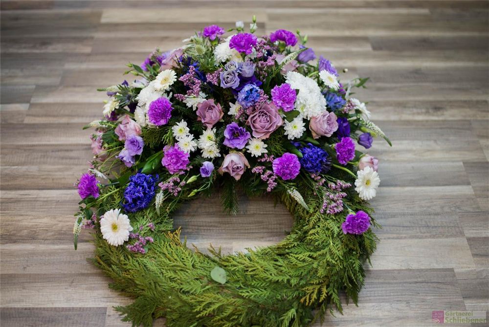 Dein Trauerkranz wird mit viel Liebe und großer Sorgfalt frisch gefertigt. Bitte beachte, dass der gelieferte Trauerkranz, je nach Saison und Verfügbarkeit der einzelnen Blumen, von den Bildern abweichen kann. Hinzu kommt, dass es sich hierbei nur um den Kranz handelt. Auf Wunsch kann die entsprechende Schleife dazu bestellt werden (siehe Trauerschleife).