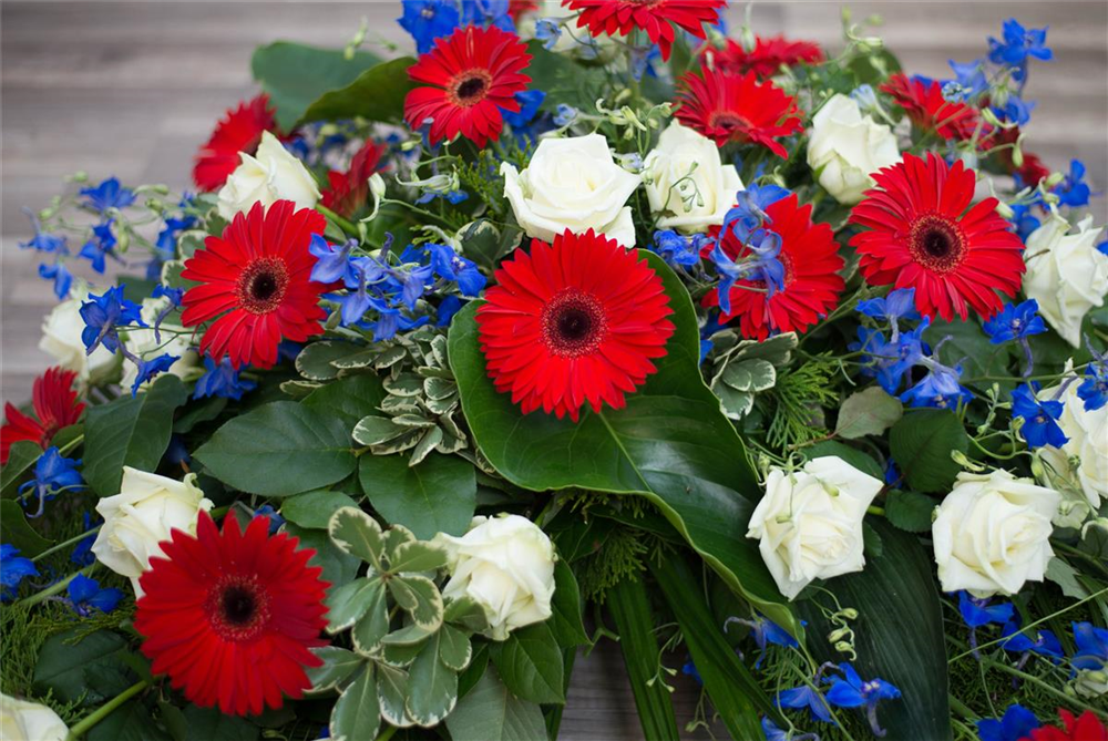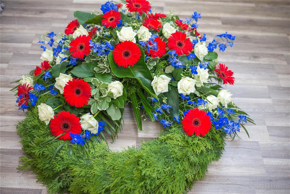 Trauerkranz Nr.6 Rot/Blau/Weiß