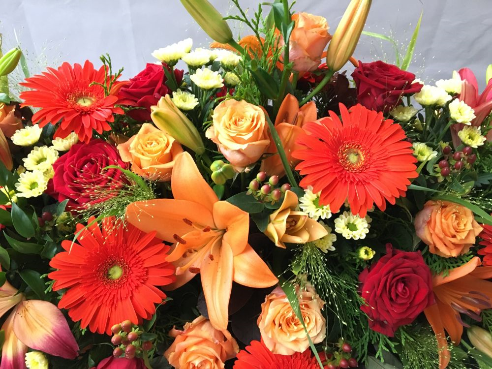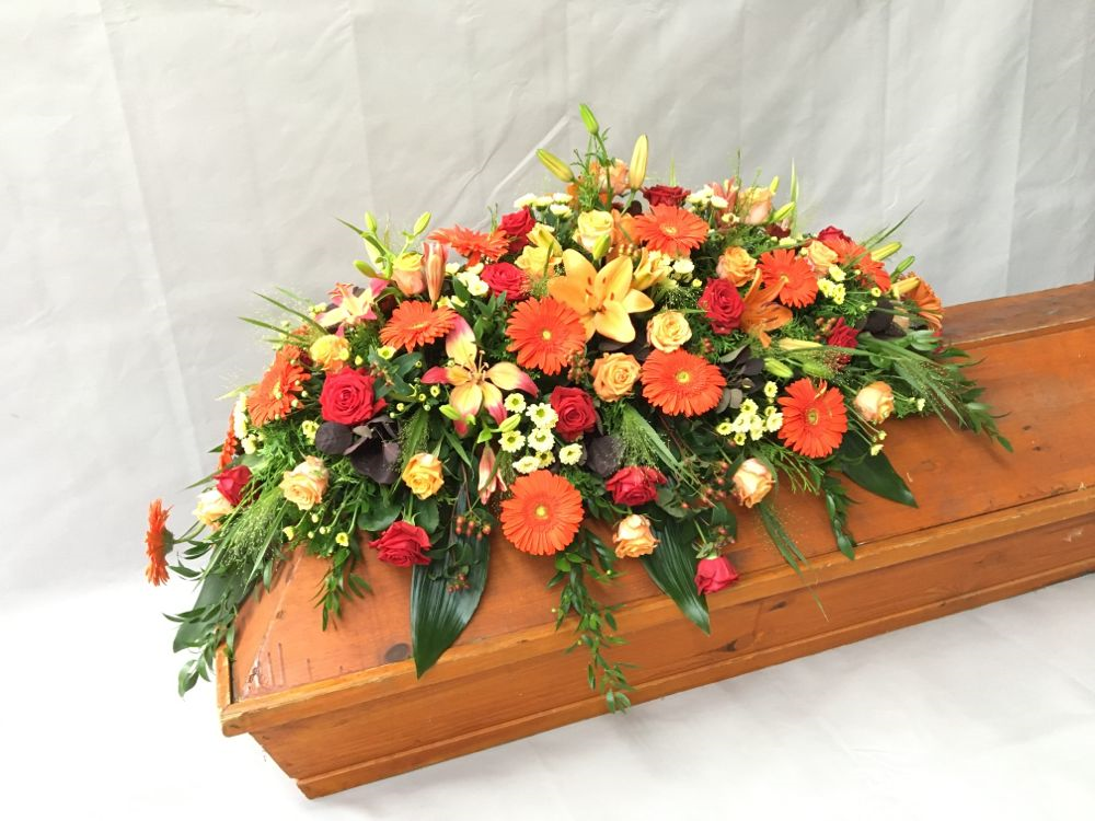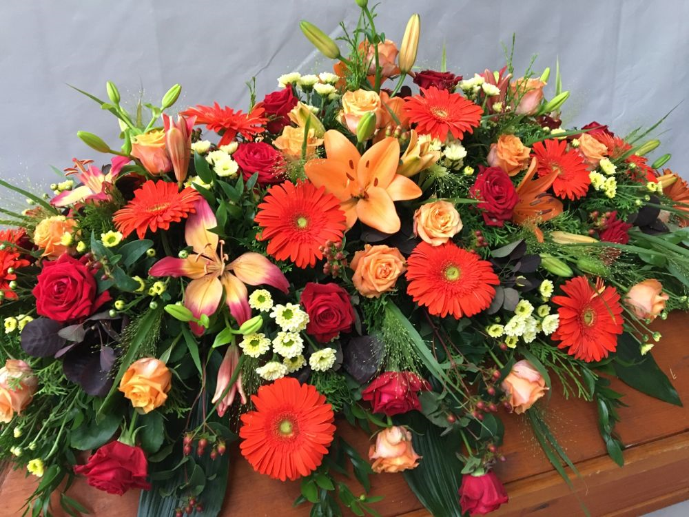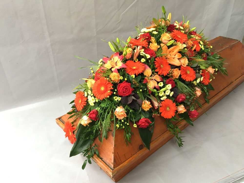 Das Sarggelege wird mit viel Liebe und großer Sorgfalt frisch gefertigt. Bitte beachte, dass der gelieferte Sargschmuck, je nach Saison und Verfügbarkeit der einzelnen Blumen, von den Bildern abweichen kann. Hinzu kommt, dass es sich hierbei nur um das reine Sarggesteck handelt. Auf Wunsch kann die entsprechende Schleife dazu bestellt werden (siehe Trauerschleife).