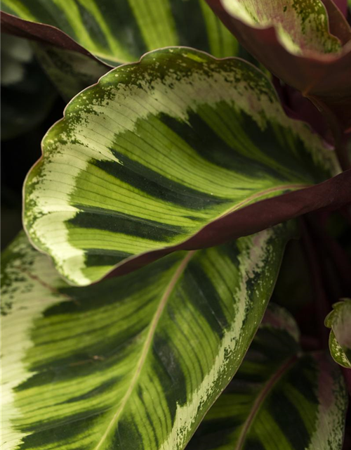 Die Korbmarante 'Medallion' (Calathea roseopicta) ist eine Pflanze mit dekorativen, dunkelgrünen Blättern. Sie sind eiförmig und gewellt. Bevorzugt wird ein halbschattiger Standort.
