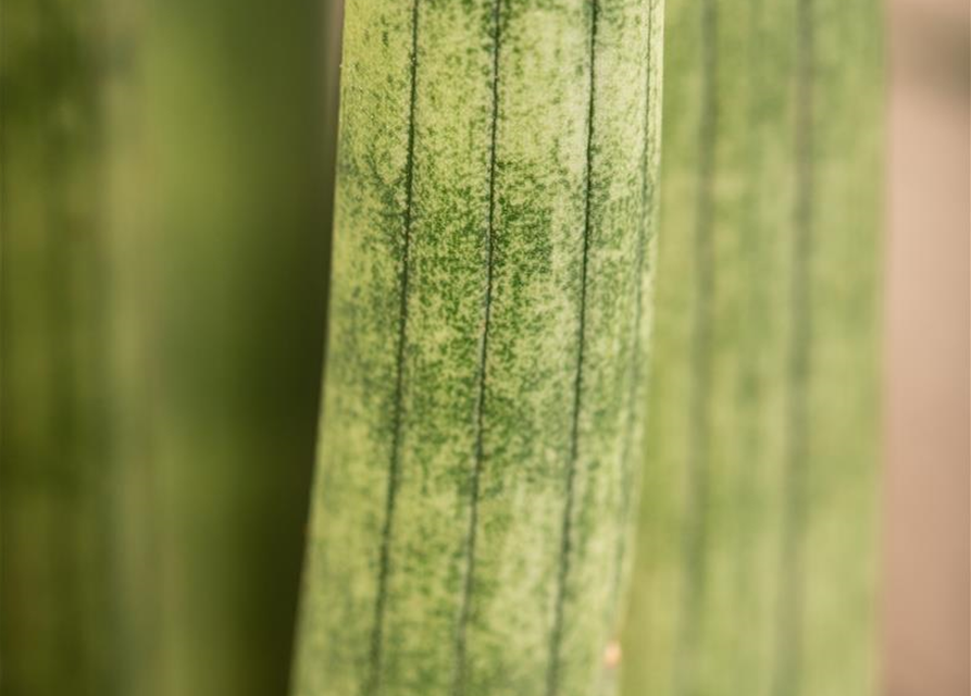 Der Bogenhanf 'Spaghetti' (Sansevieria cylindrica) ist eine weiß blühende Pflanze, die dickfleischige, gestreifte Blätter trägt. Diese aufrechte Pflanze gedeiht am besten an einem hellen Standort.