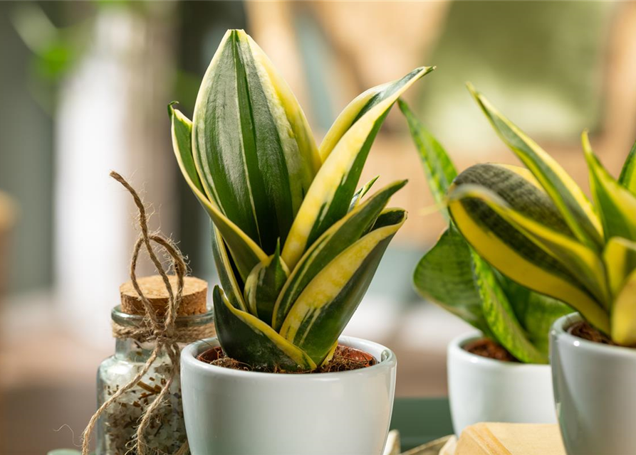 Bogenhanf 'Golden Hahnii' ist auch unter diesem Namen bekannt: Schwiegermutterzunge oder Sansevierie.