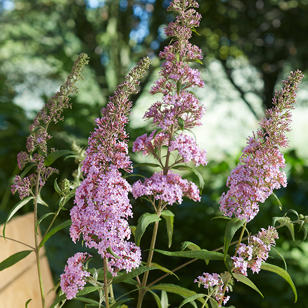 Der Sommerflieder (Buddleja) ist der bekannteste Blütenstrauch, um Schmetterlinge anzulocken. Daher wird er im Volksmund auch Schmetterlingsflieder genannt. Während seiner Blütezeit von Juli bis Oktober können zahlreiche Schmetterlingsarten wie Tagpfauenauge, Admiral oder Kleiner Fuchs beim Nektartrinken beobachtet werden. Seine bis zu 30 cm langen Blütenrispen duften süß honigartig und leuchten in Weiß, Rosa- und Rottönen bis hin zu Lila und Blau. Er gedeiht am besten an einem sonnigen Standort mit trockenem, durchlässigen Boden. Besonders stilvoll wirkt der Sommerflieder, wenn Sie ihn mit verschiedenen Stauden, Rosen oder auch Gräsern kombinieren. Durch die variierenden Blütenformen und -farben entstehen wunderbare Kontraste.
