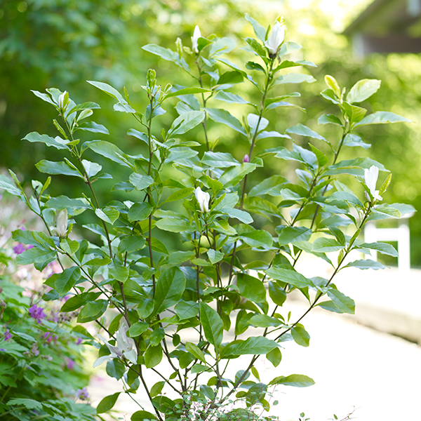 Die Stern-Magnolie (Magnolia stellata) ist ein eher langsam wachsender, breitbuschiger bis ca. 2 - 3 m hoher sommergrüner Strauch aus Japan. Sie wächst stark verzweigt und hat leuchtend grüne, schmale Blätter, die erst nach der Blüte erscheinen. Die weißen, duftenden Blüten, die wie Sterne aussehen, haben lange, schmale Blütenblätter. Daher auch ihr Name „Stern-Magnolie“.
