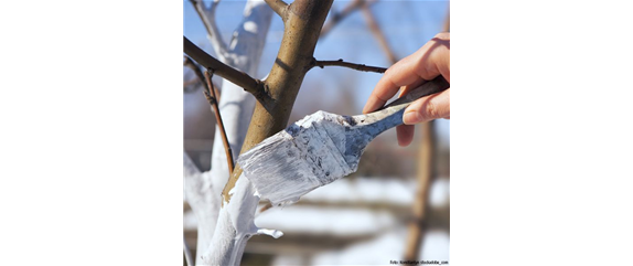 Erste wichtige Regel: Schneiden Sie Baumkronen erst im Frühjahr zurück. Folien sind für den Schutz von Kronen ungeeignet, da sich darunter Kondenswasser bildet und sich die Wärme staut. Die Stämme von Jungbäumen und Obstgehölzen sollten vor Frost geschützt werden, um Frostrisse zu vermeiden. Dafür bieten sich Kokos- oder Strohmatten an. Auch ein Kalkanstrich ist empfehlenswert. Die weiße Farbe reflektiert das Sonnenlicht. Somit wird verhindert, dass sich die Rinde zu sehr erhitzt und dadurch Frostrisse entstehen. Als Insektenschutz können zusätzlich Leimringe angebracht werden.
