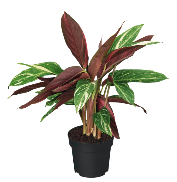 Die Korbmarante (Calathea) ist für ihre außergewöhnlichen Blattzeichnungen bekannt. Besonders die Sorte 'Trio-Star' fasziniert durch ihre länglich geformten Blätter in einem spannenden Farbspiel aus dunklem Grün, sanftem Rosé und Cremeweiß. Für ihr Wohlbefinden bevorzugt sie einen halbschattigen Standort ohne direkte Sonne, gleichmäßige Feuchtigkeit und eine etwas höhere Luftfeuchtigkeit.